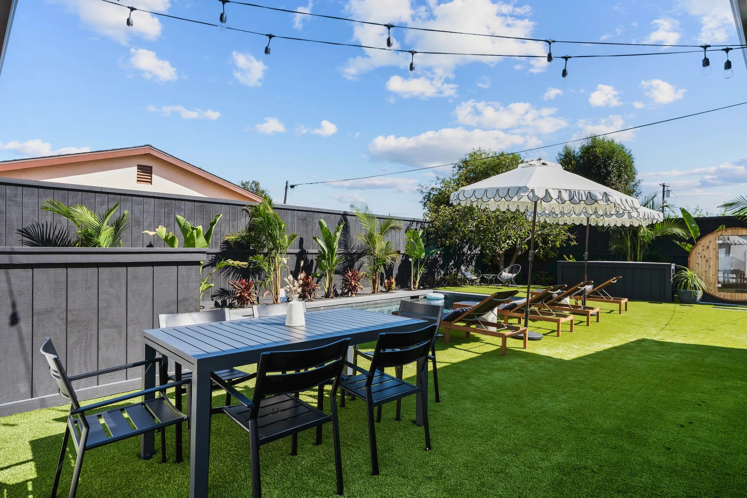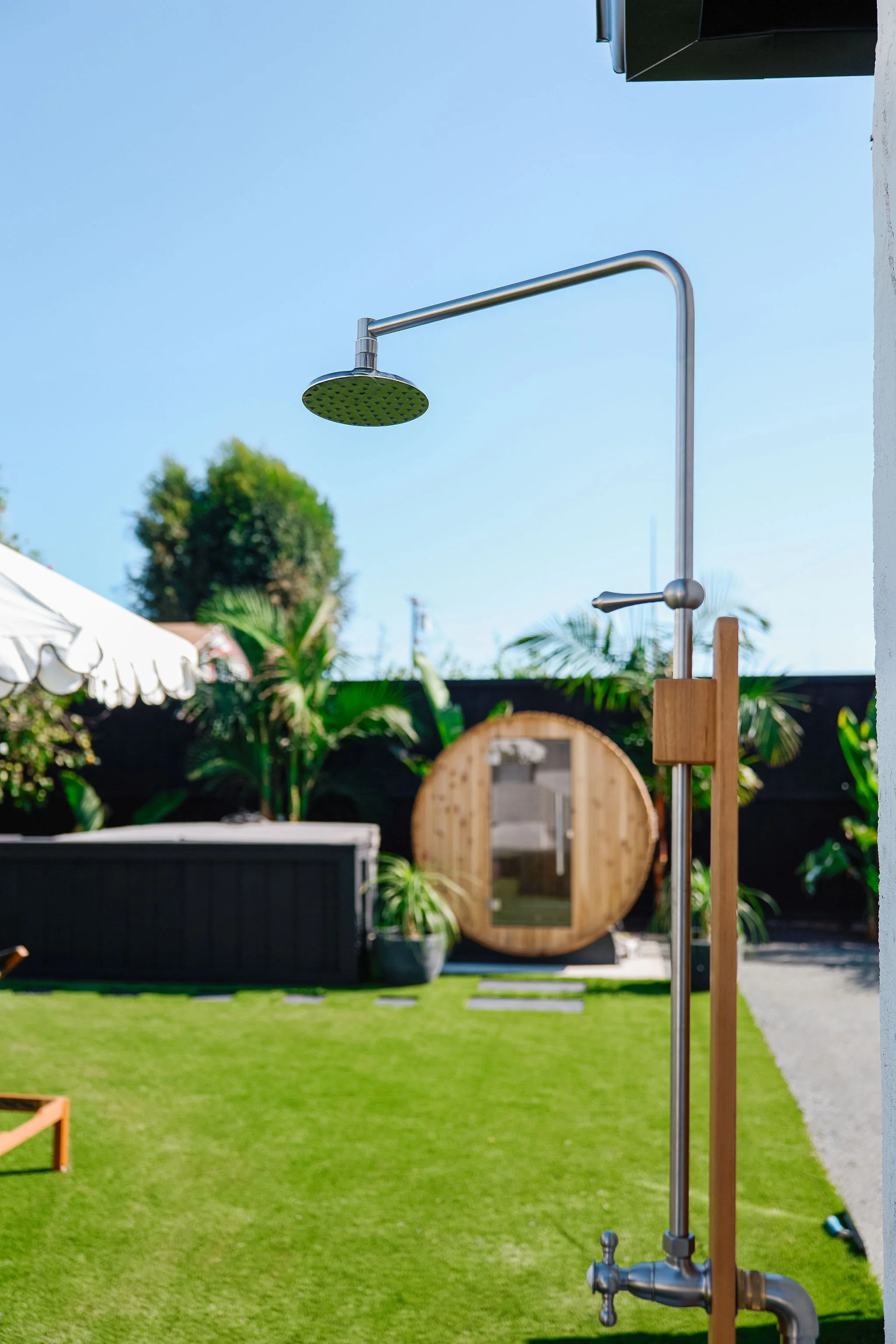 Between the outdoor shower, the expansive dining table, and the sound of laughter echoing, every moment out here feels like the perfect California day.